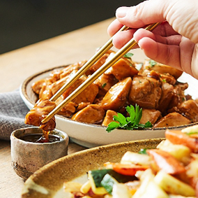 Toss vegetables with garlic, salt and pepper, and just enough Gojo Miso Ginger Dressing to coat evenly. Marinate for 30 minutes.